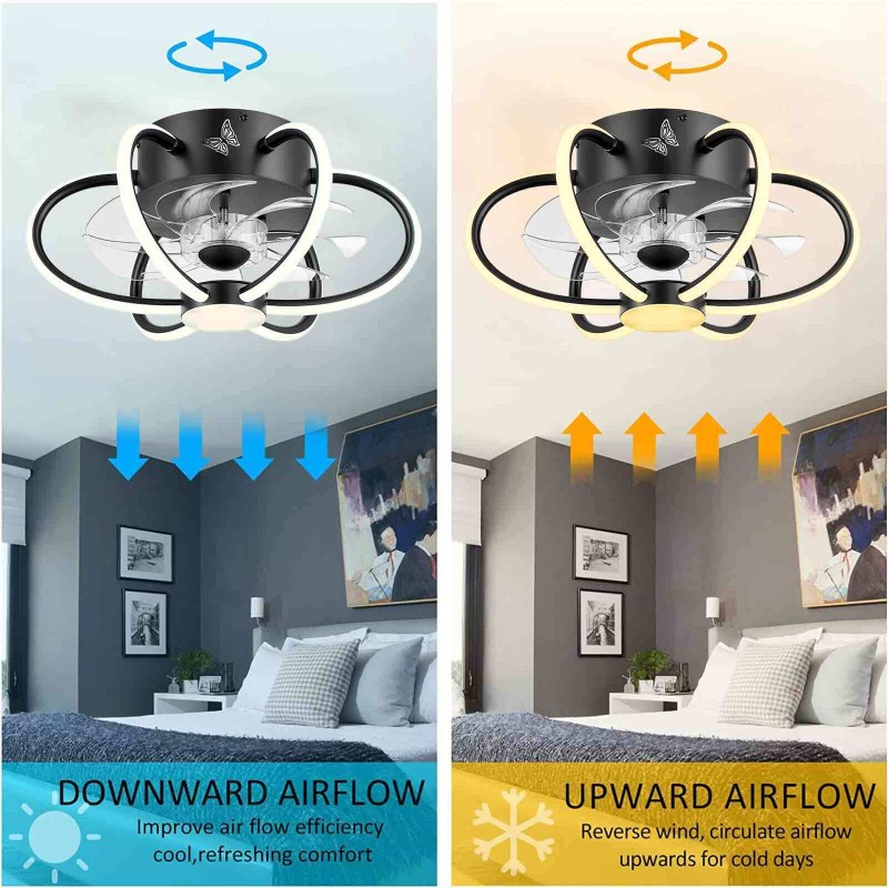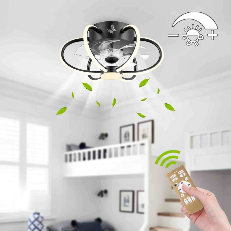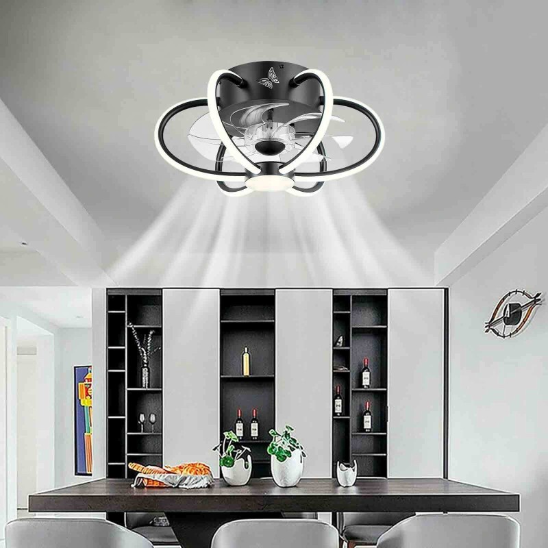 16.1" Flush Mount Ceiling Fan Light Dimmable LED Chandelier Lamp 6-Speed Remote