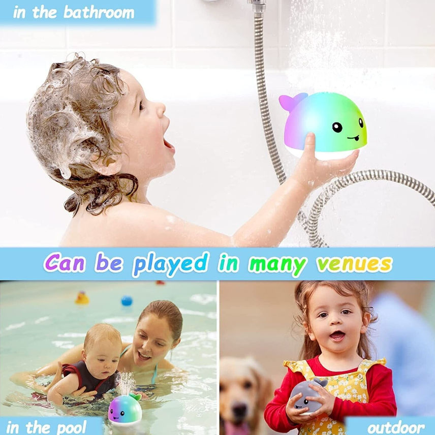 • Fun Baby Bath Toy --Cute whale light up baby bath toy can automatically induction spray water and flash colourful lights when you put tub toys in the water. Bath toys, spinning and floating on the water, spray water, bringing endless entertainment for baby bath, your child will enjoy every bath time.Perfect bath toys for toddlers, kids, baby.
