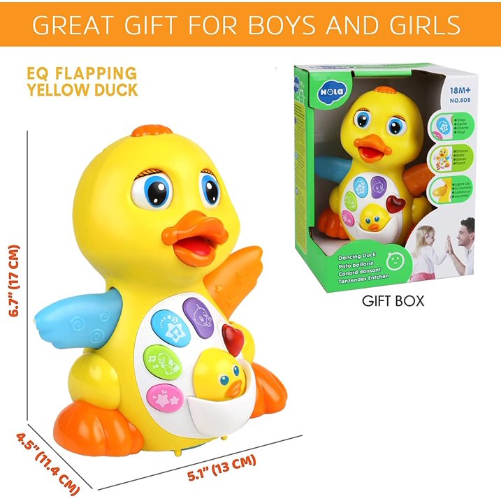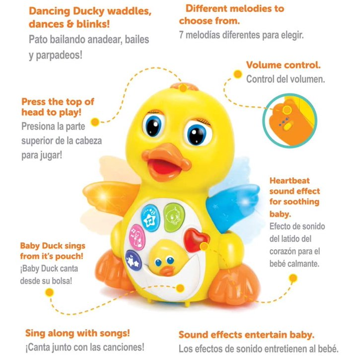 • ??DEVELOPMENT BENEFITS - The Musical Ducks toy for boys, girls, and toddlers will sing and dance to the baby. It will stimulate sensory development, auditory learning, and motor skills!