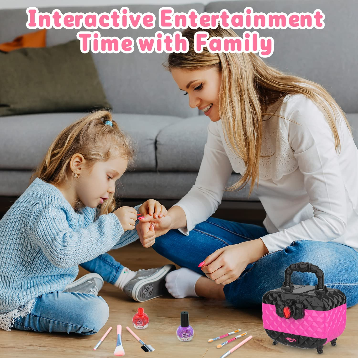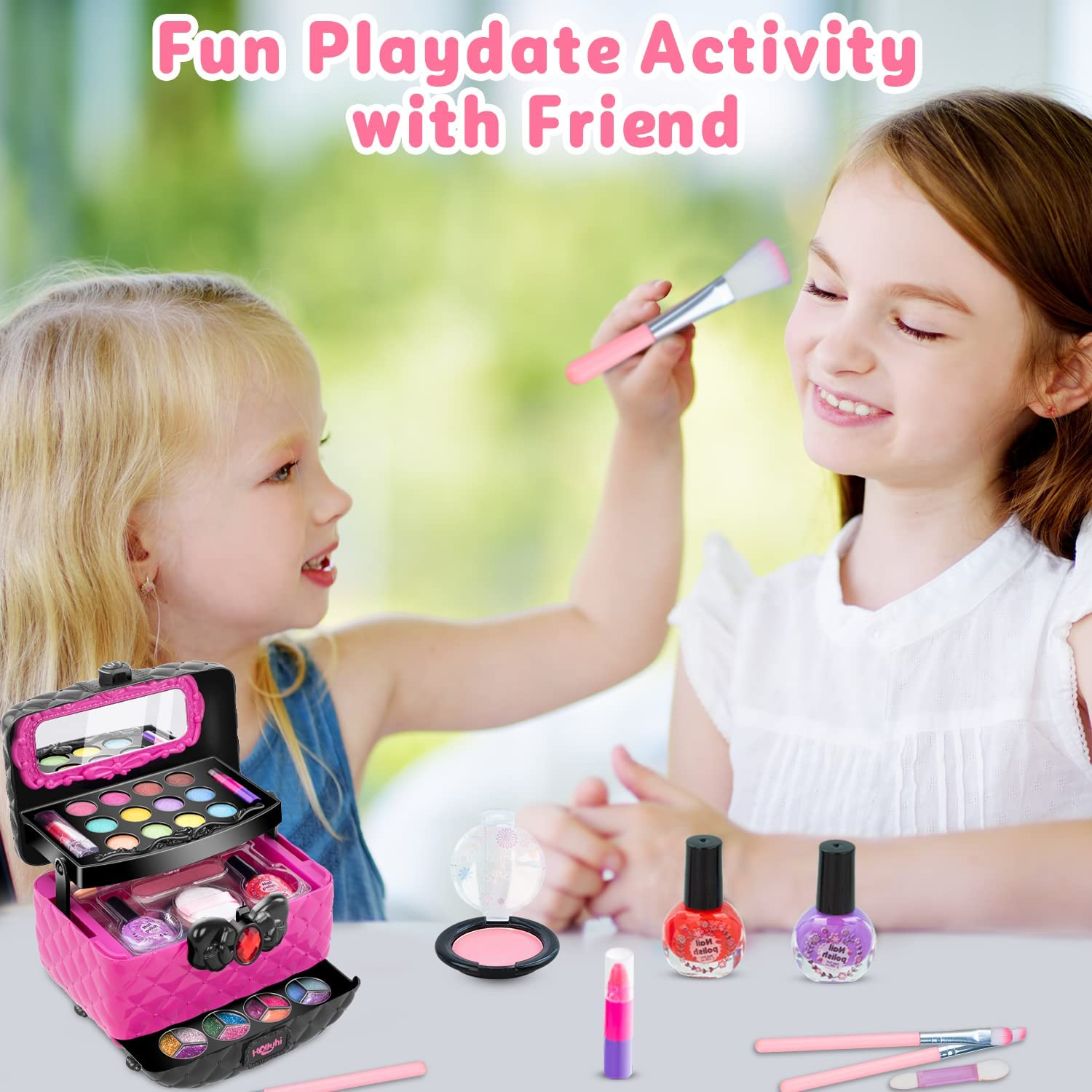 Hollyhi 41 Pcs Kids Makeup Toy Kit for Girls, Washable Makeup Set Toy with Real.