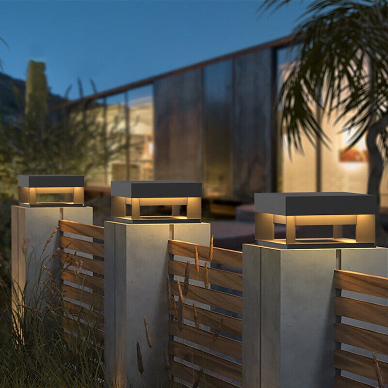 Modern LED Pillar Lamp Outdoor Gate Post Light Patio Garden Lantern Lighting