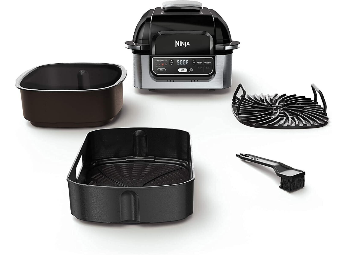 • The Ninja Foodi Grill. The grill that sears, sizzles, and air fry crisps. Indoor grill and air fryer