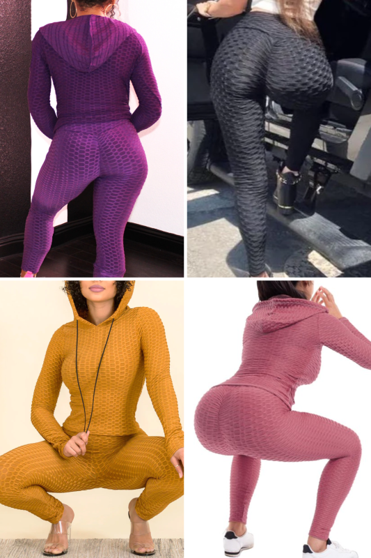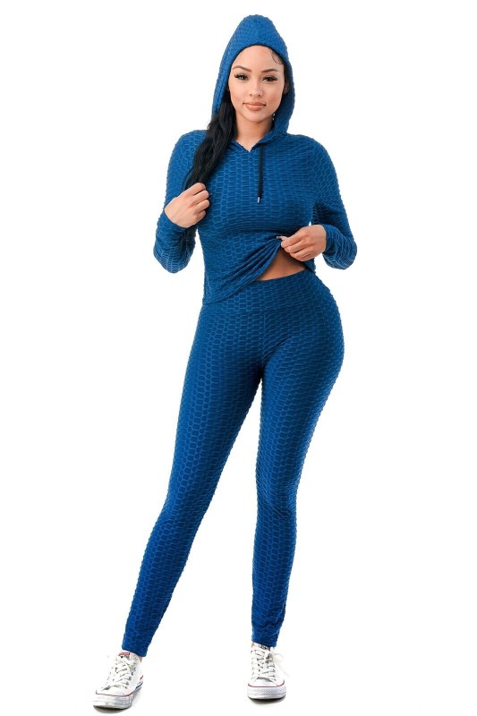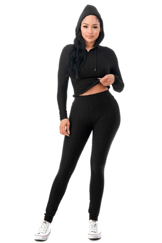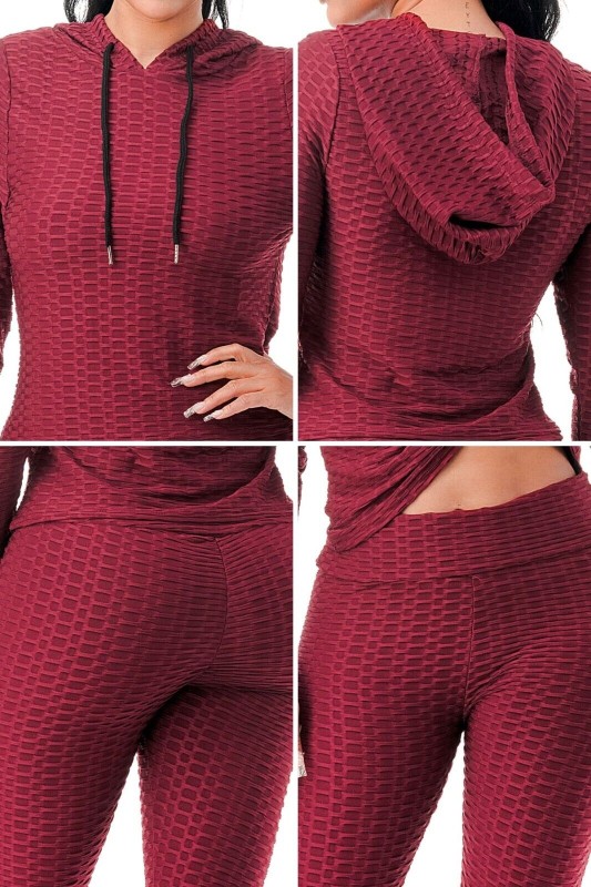 Women Texture 2 Piece Outfit Hoodie Top and Yoga Leggings Pants Workout Set