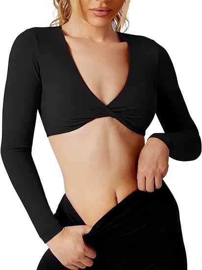 YEOREO Kyla Women Crop Top Long Sleeve Padded Sports Low Medium Impact Yoga Shirt Workout